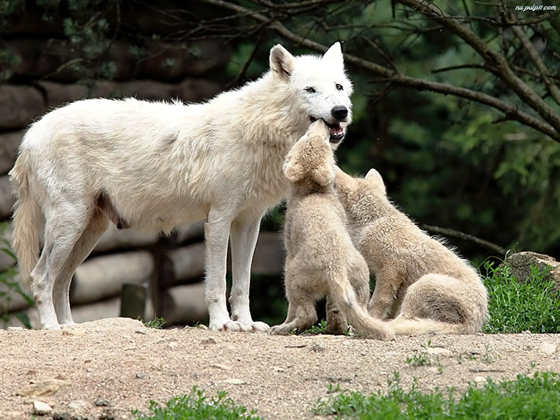 - No dzieciaki przyprowadźcie tatę i resztę rodzeństwa.- Powiedziała. Po chwili przyszedł szary basior z 4 szczeniąt. Młode ustawiły się w rządku.